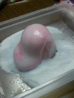 3.マグマのもと(?)を噴火台の中に入れる 1て作った液体をそこに流す